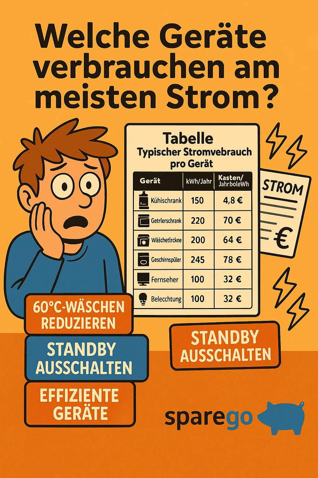 sowie praxisnahe Spartipps. Grundlage sind typische Leistungsdaten gängiger Haushaltsgeräte und realistische